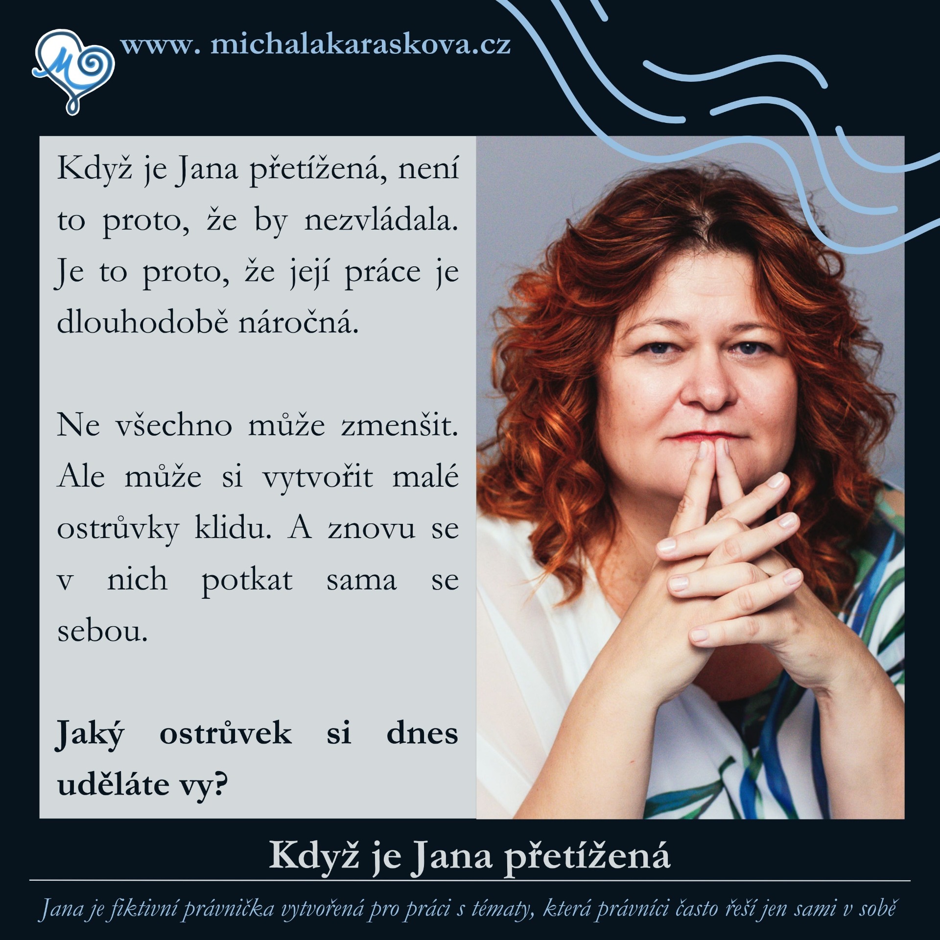 Jana je přetížená. Ne proto, že by nezvládala. Ale proto, že je v profesi, která dlouhodobě vyžaduje pozornost, odpovědnost a výkon.